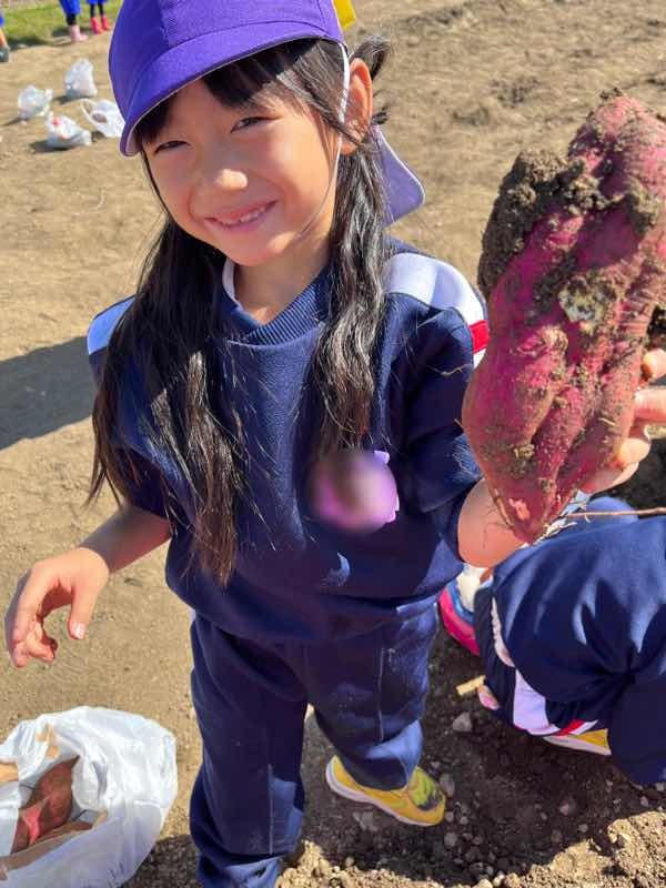 と苦戦していましたが、バスのおじさんにもお手伝いしてもらいながら、大きい芋やおもしろい形の芋がいーっぱい掘れました!