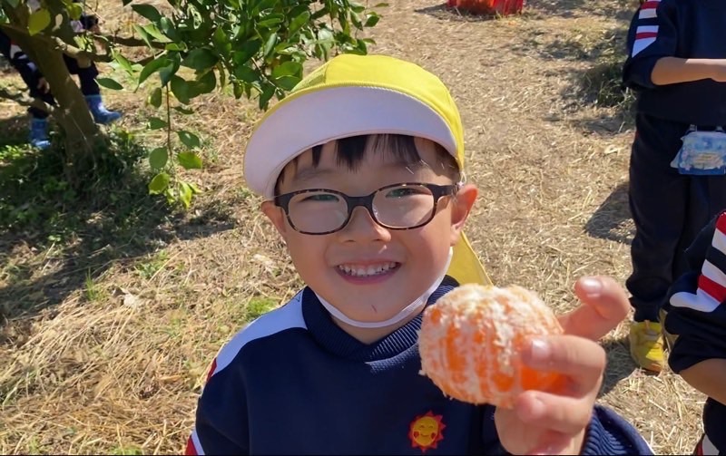 取れたみかんに丸ごとかぶりついて食べている子も!笑^_^