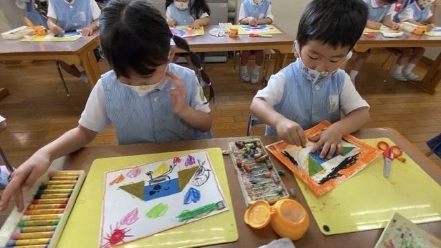 クレパスで好きな様に描いていきます!