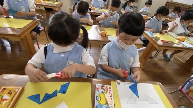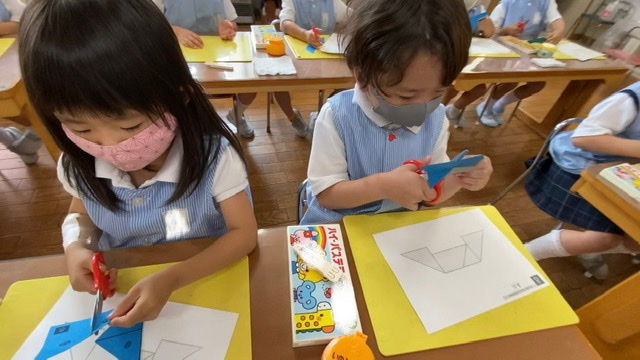 まず、線が描いてある色紙を切り