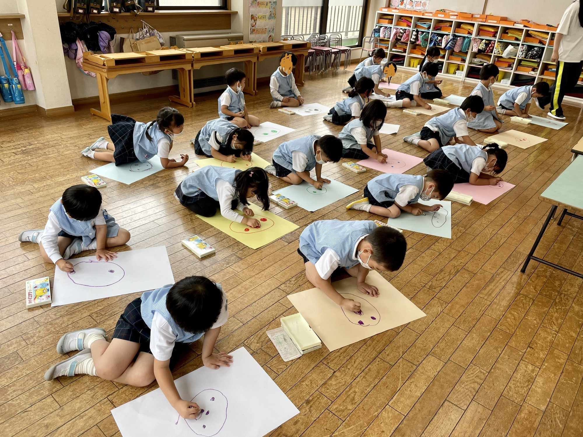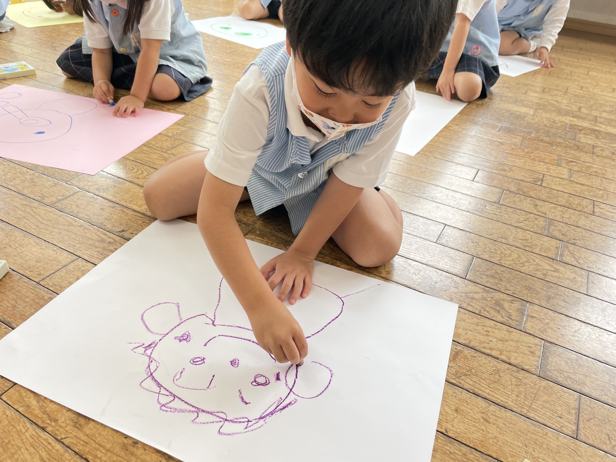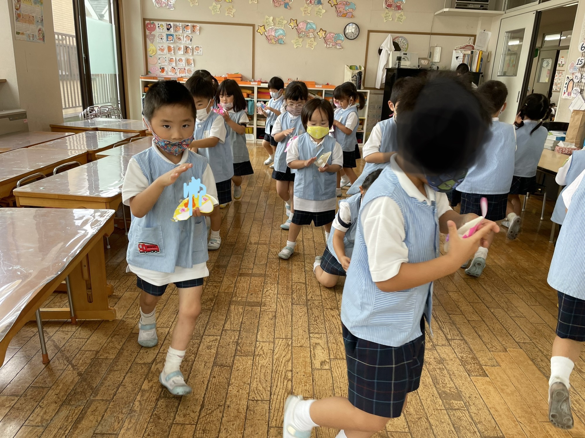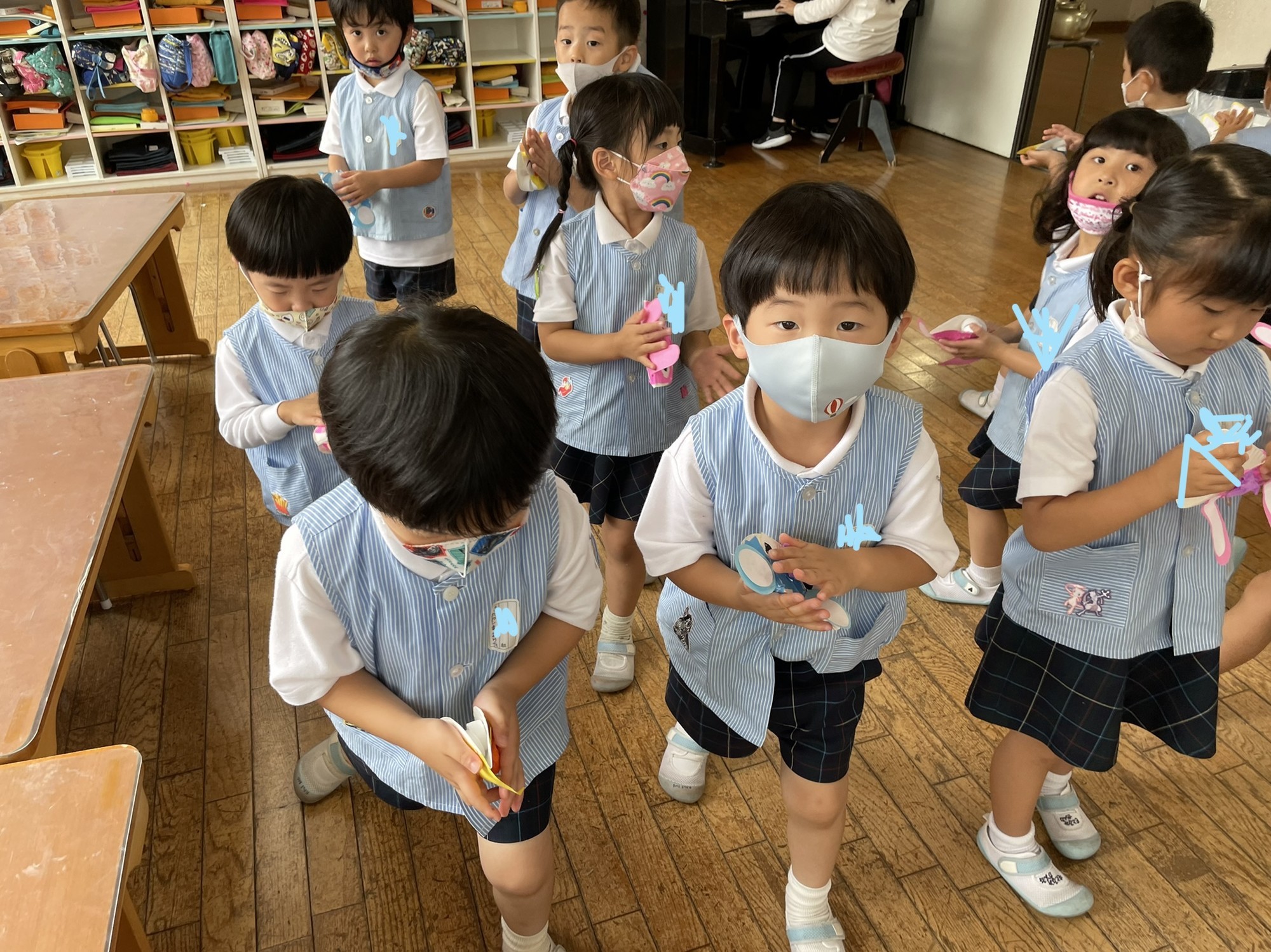 本当のシャボン玉を見て、「まるいかたちー」「いっぱいでてきたー」「キレー」と感想がたくさんでてきました。