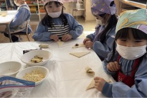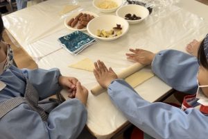 事前にエプロンなどを持ってきてもらっていたので、子どもたちは当日を心待ちにしていました^_^