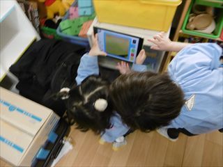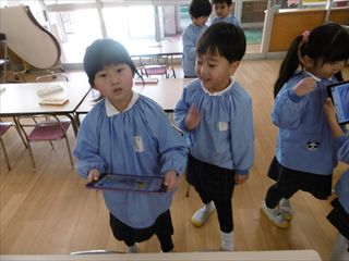こうしてお友だちと落とさず一緒に i padを持ったり