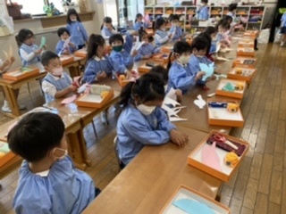 ハサミの使い方もかなり上達したみんな。