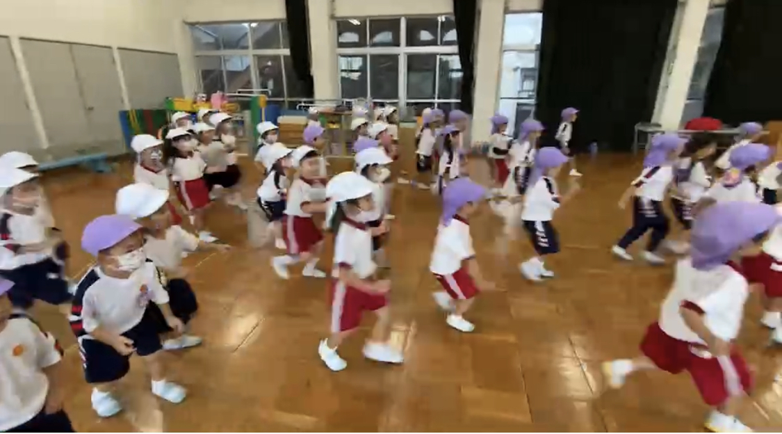 ホールで運動会の練習を頑張った後は、ゆりぐみさんと一緒に、[だるまさんの1日]をしました!