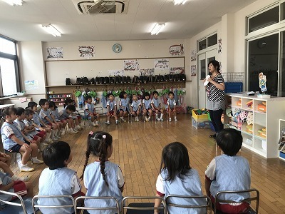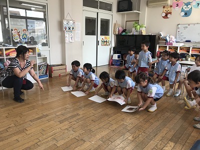 今日は久しぶりの英語指導があり、引いたカードの物を買いに行くショッピングゲームをしたり、音楽に合わせて踊ったりと、とても楽しんで取り組む様子が見られました♡