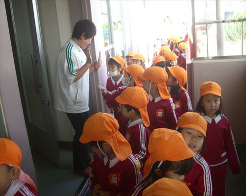 園長先生とタッチして、ご挨拶。