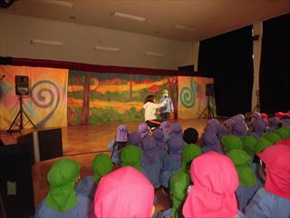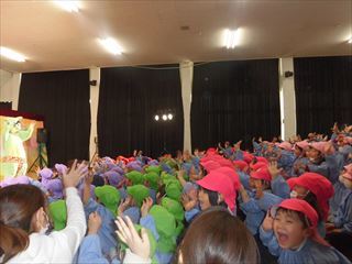 劇団ばくの「ねずみのすもう」の劇を見ました。