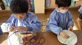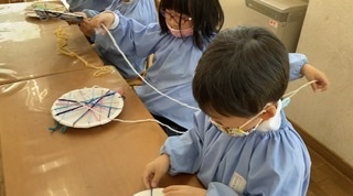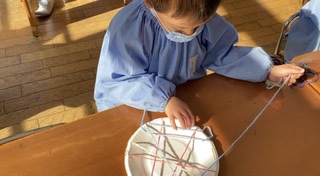 毛糸がぴんっと貼れるように巻いていくのがちょっぴり難しかったお友達もいましたが、やっていくうちにだんだんと慣れてきて、みんなとても上手に巻き巻きしてくれていました!