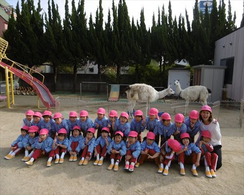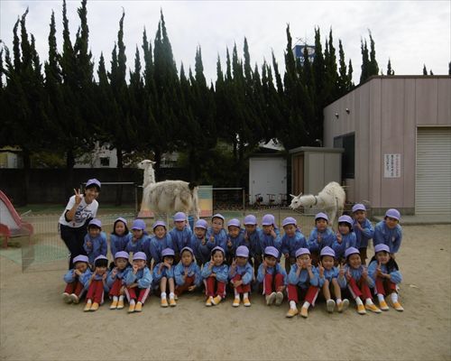 後ろのラマを気にしながらも「ピース(^v^)!」
