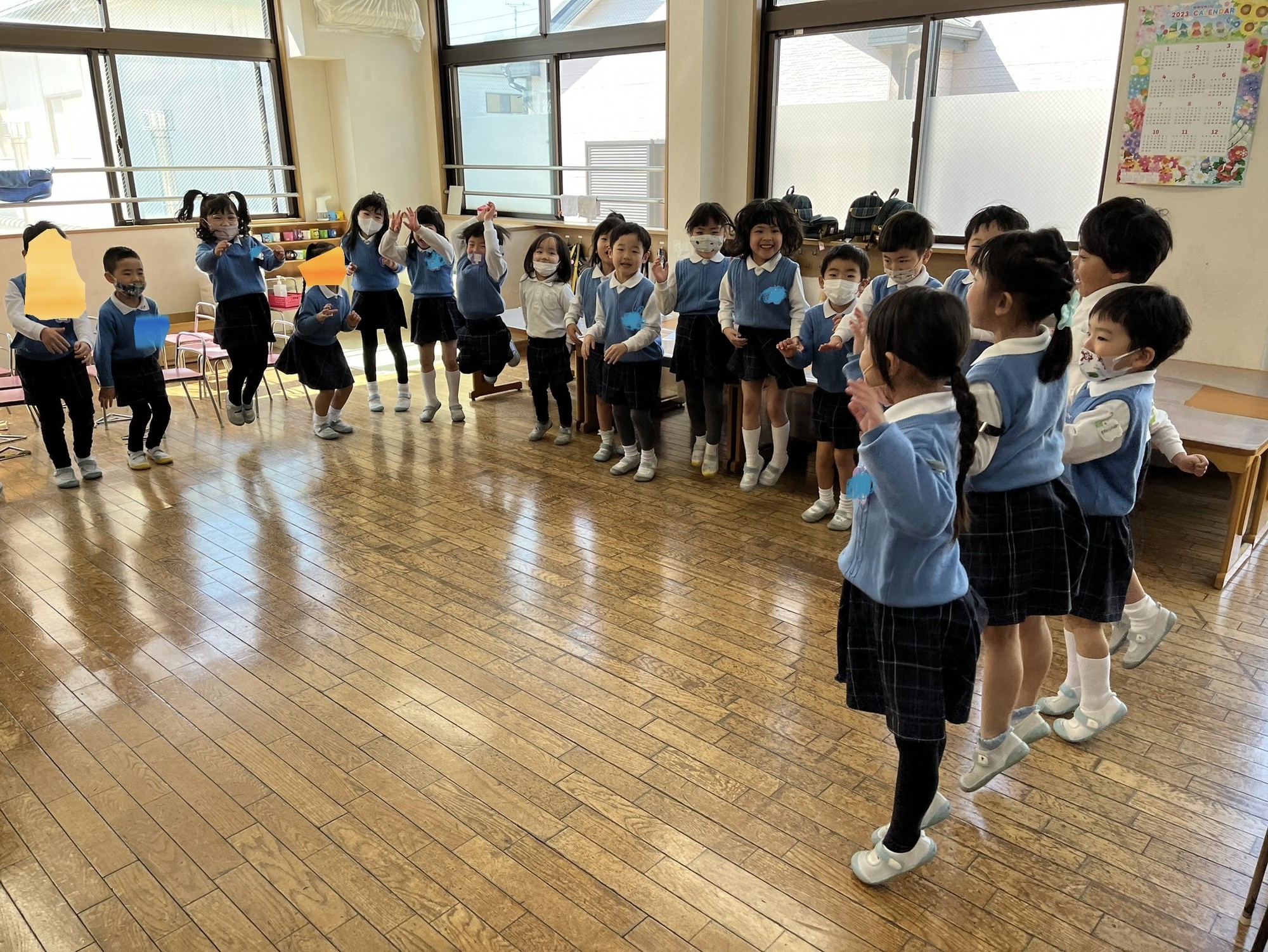 バン・ブー・シューツ!とリズムに乗りながら教えてもらい、終わってからも頭に残ったのか、「バンブーシューツ!」と飛びながらトイレに行く子ども達でした笑
