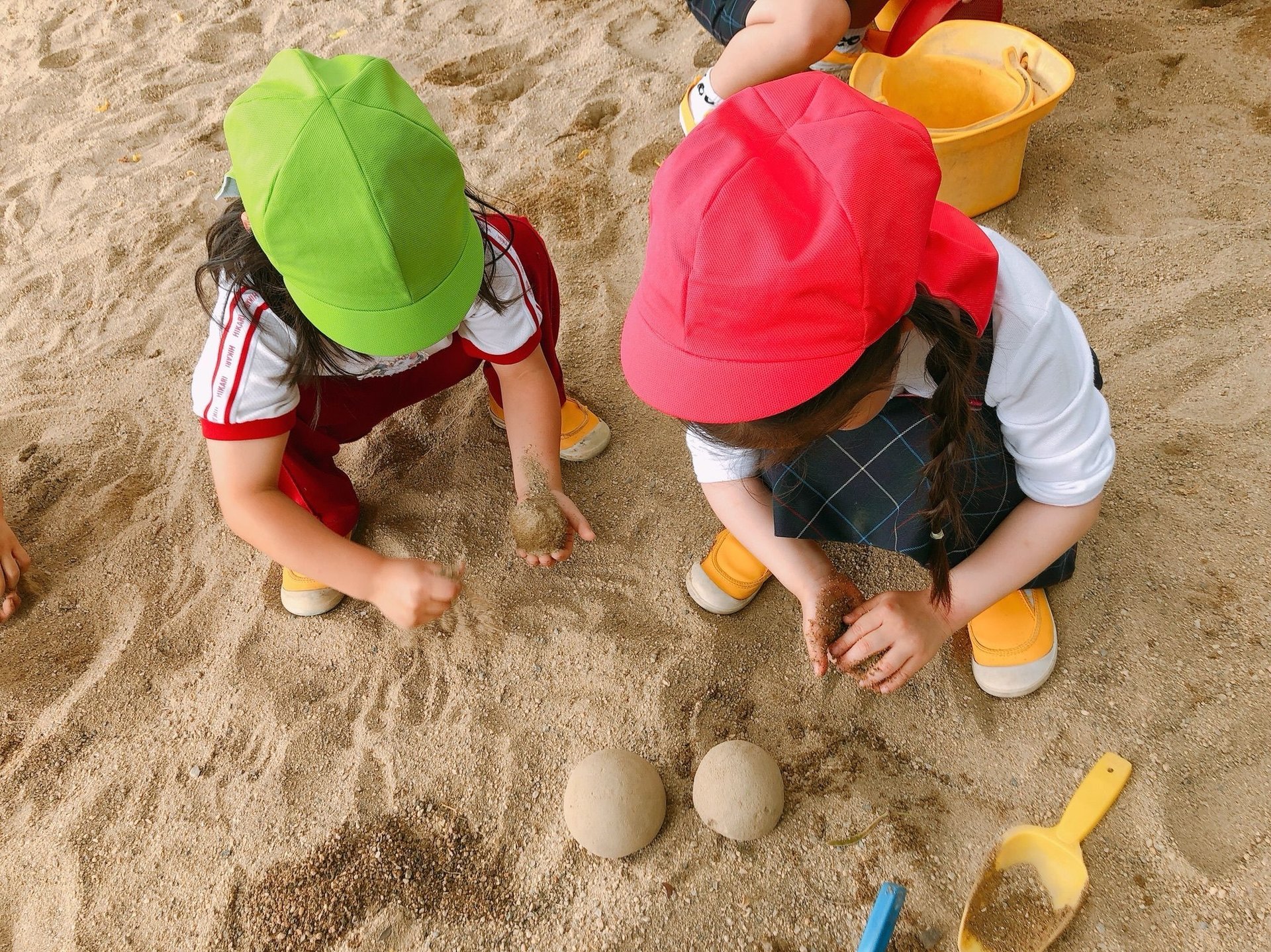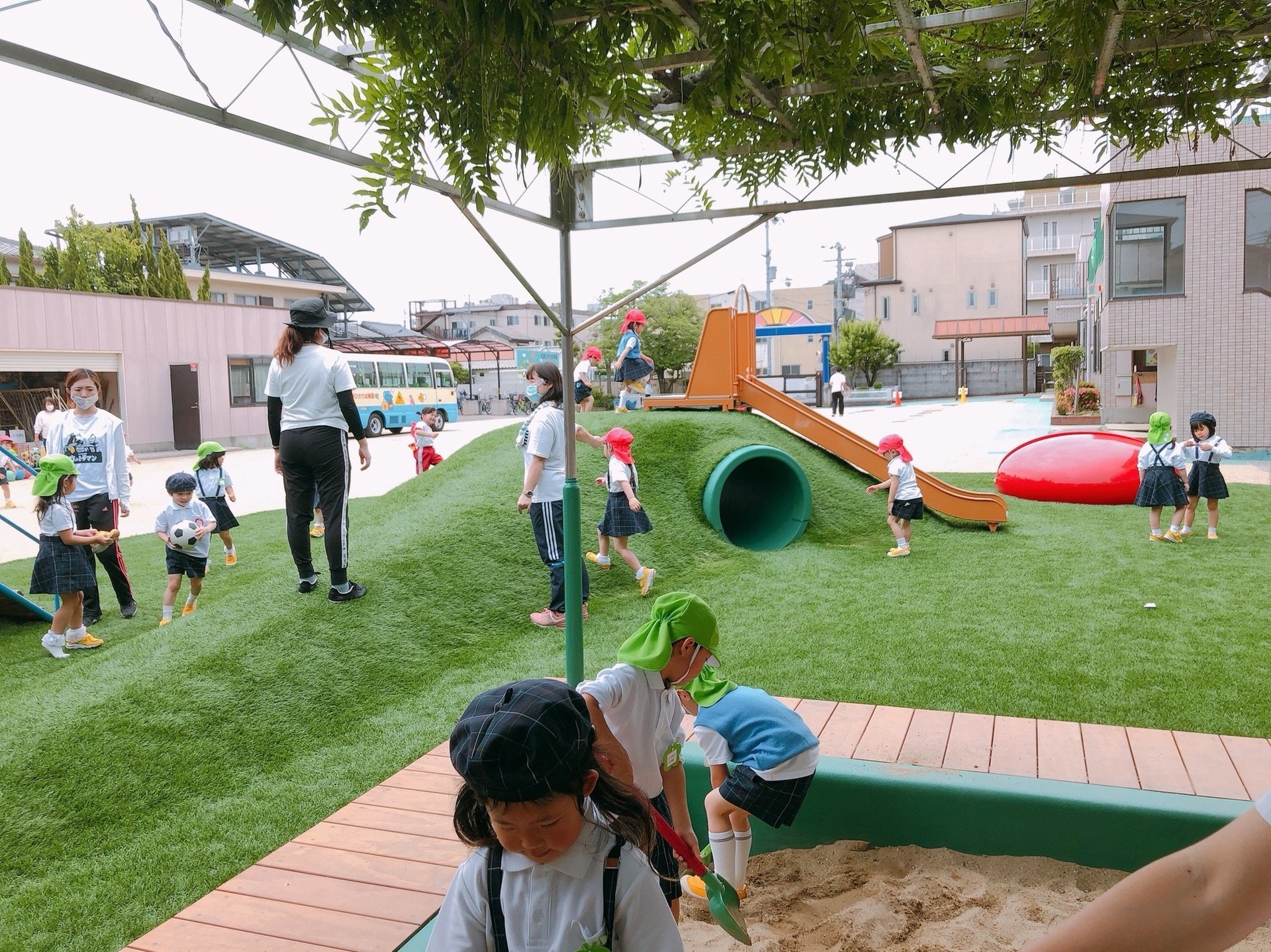 少人数に別れて過ごしましたが、お外では久しぶりのお友達と思い切り遊ぶ姿が見られました!芝生のおやまは大人気で、YouTubeを見てくれたお友達は泥団子作りを楽しんでいました☆