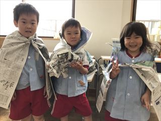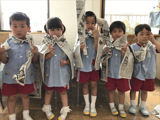 あやめ組は新聞で衣装作りをしました(*^^*)