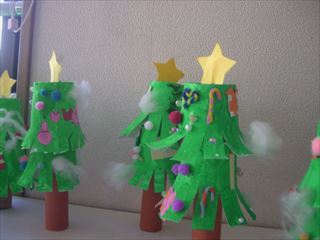 そこへ色んな素材を使って飾りつけをすると、クリスマスツリーができあがりました。