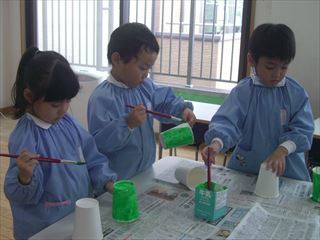 また、製作では紙コップを使ってクリスマスツリーを作りました。