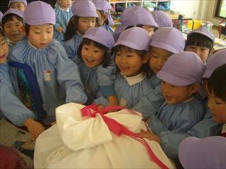 大きくて白い袋が置いてあり、子どもたちは大喜び!!