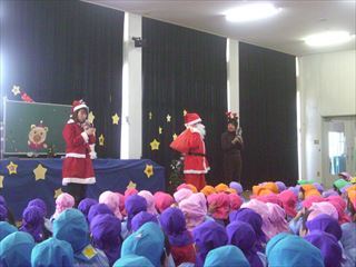 先生たちもサンタさんの格好になり賑やかな雰囲気の中、