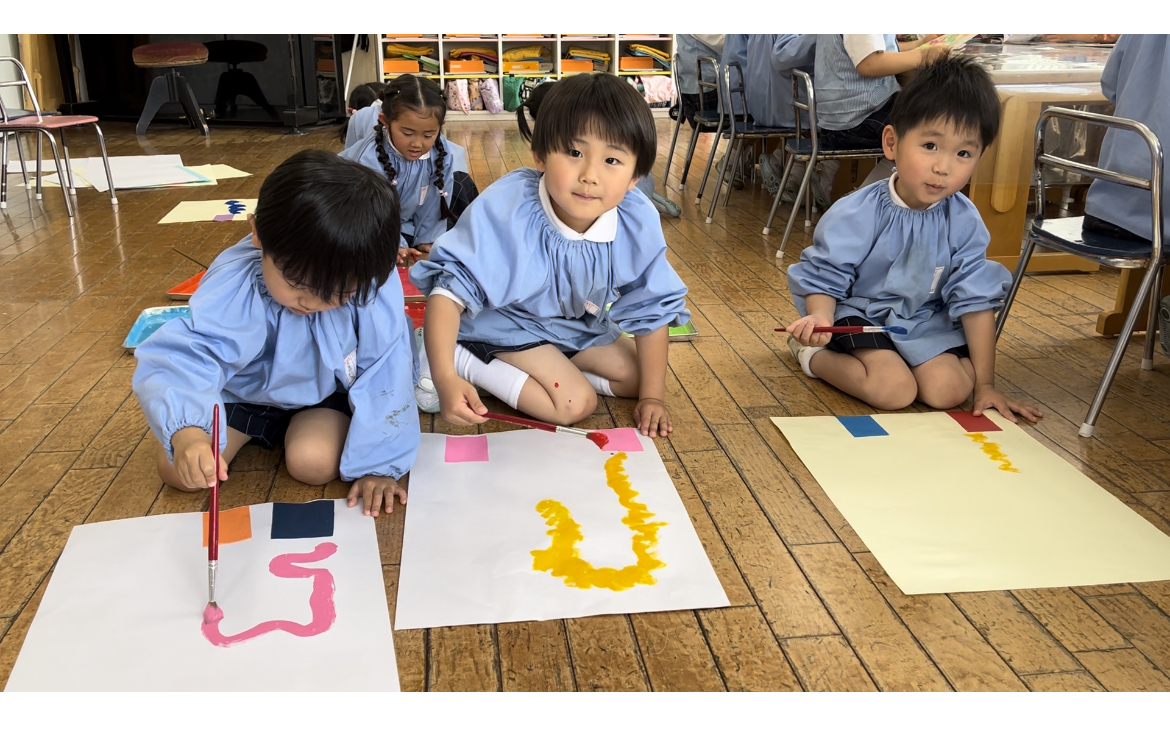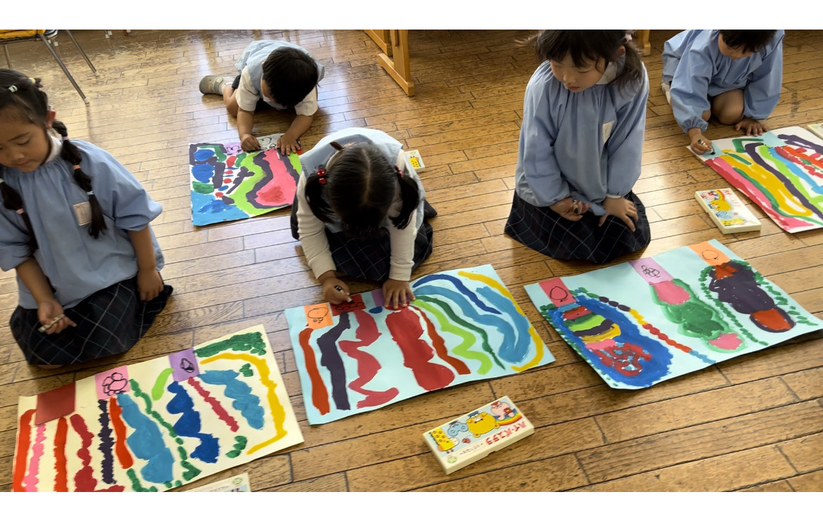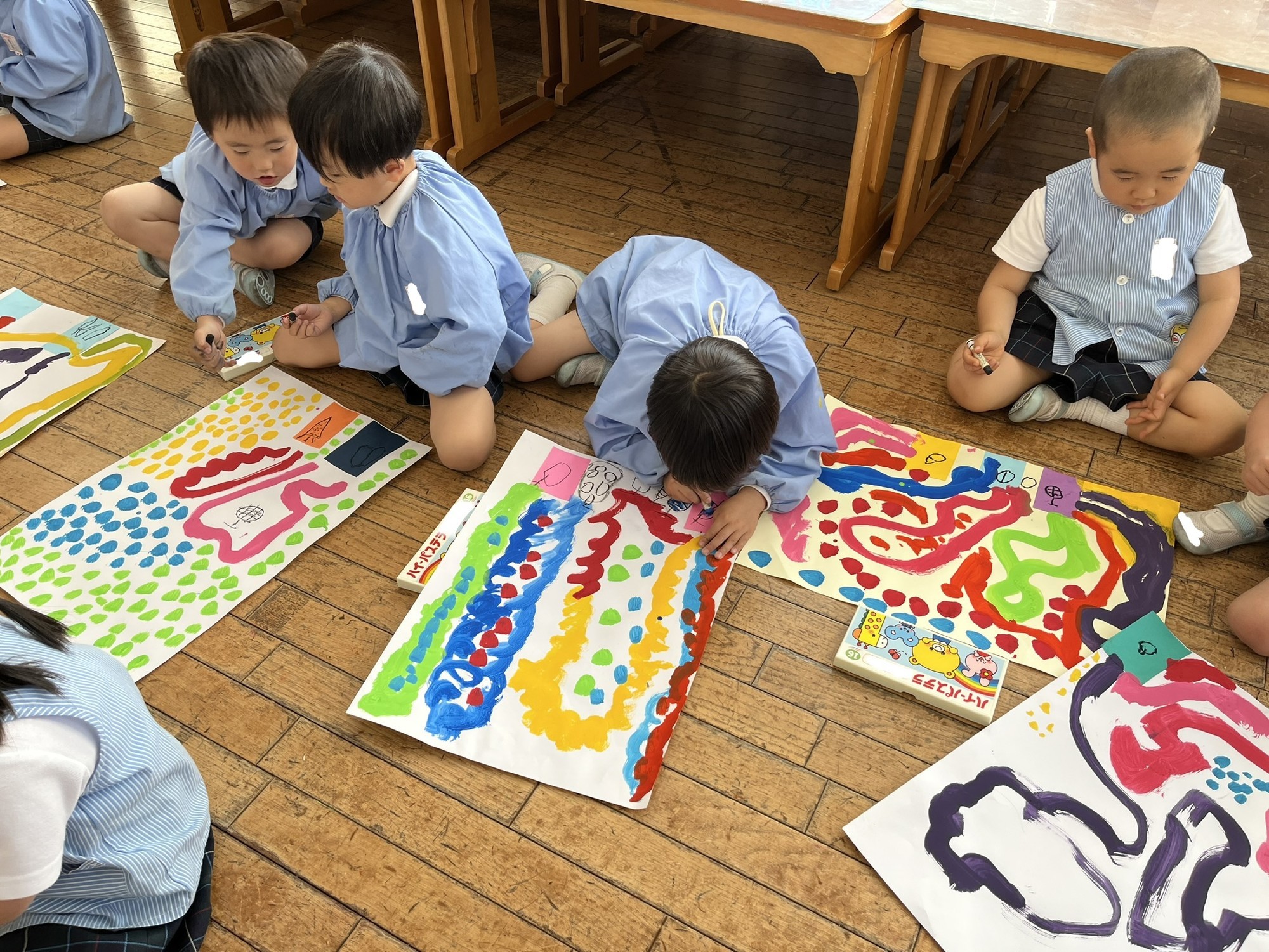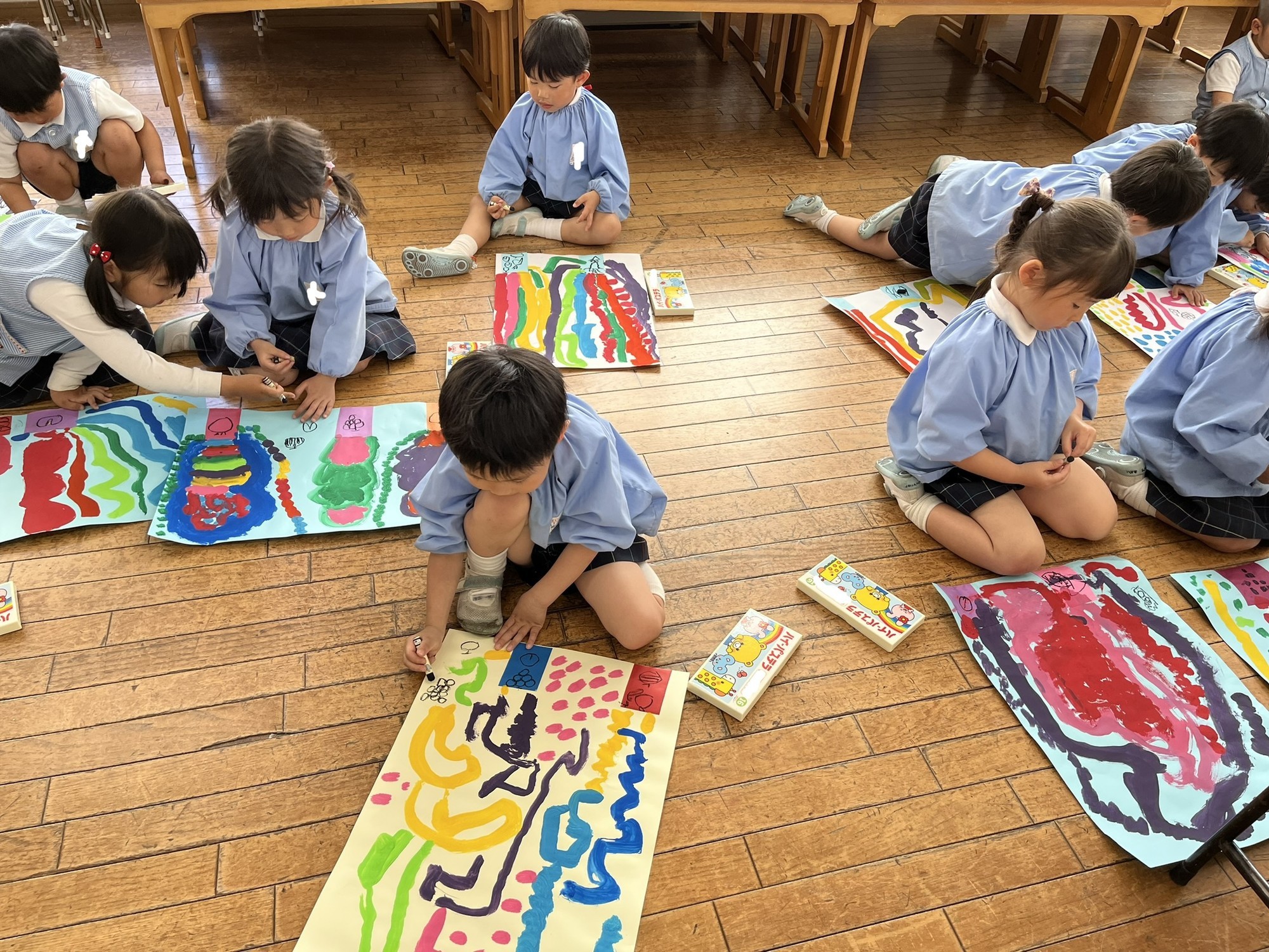 「いちごのにおいがするねん!」「バナナとチョコレートが一緒になってなチョコバナナのにおいしてくるねん!」と描いてる煙の説明をしてくれる子ども達でした!