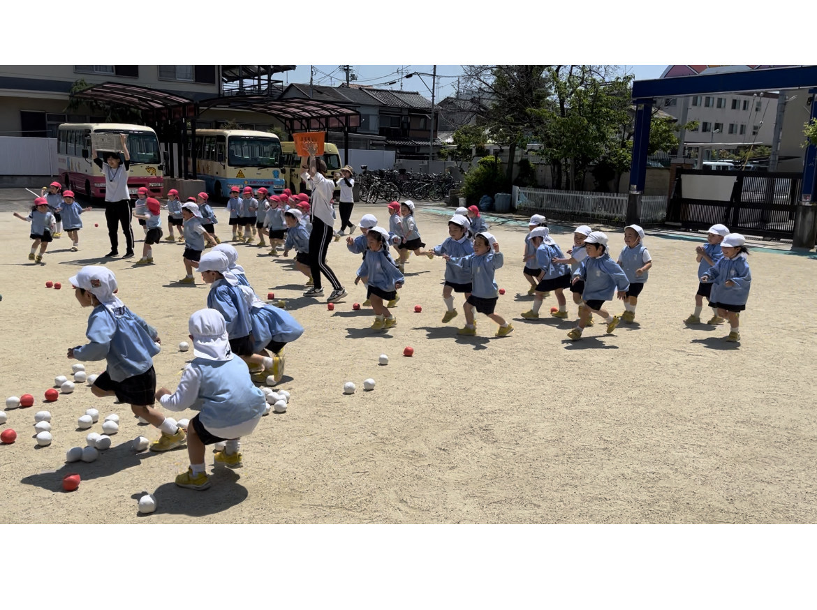 担任の先生を探して先生が持っているカゴに玉を入れよう!と先生を探す子ども達が可愛いかったです(≧∀≦)