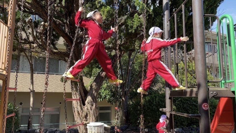 食べたあとすぐにアスレチックで