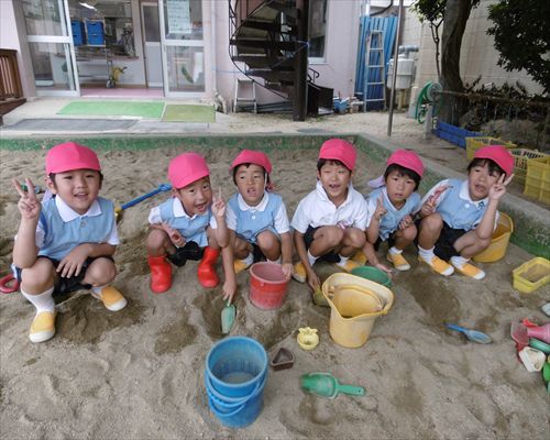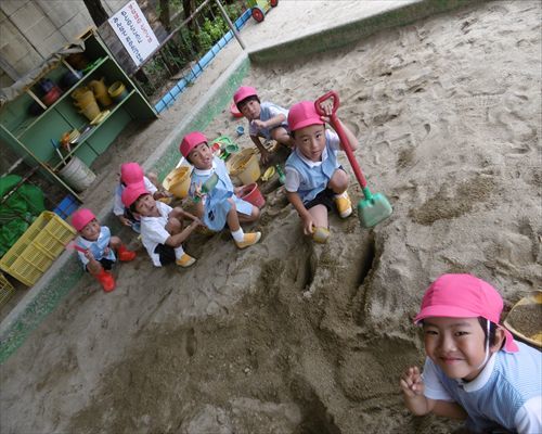 お砂場の砂をいっぱい掘ってトンネルできたよ〜