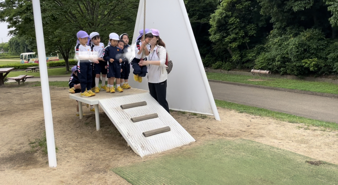 行きのバスの中では、お歌を歌ったり、公園には何があるのかなぁとお話しをしたりとワクワクが止まりません!