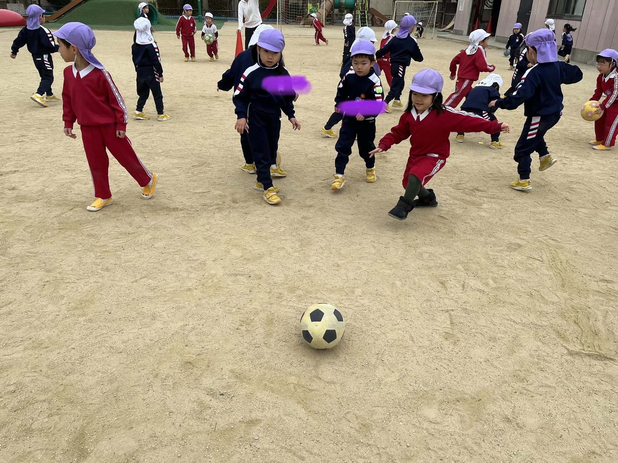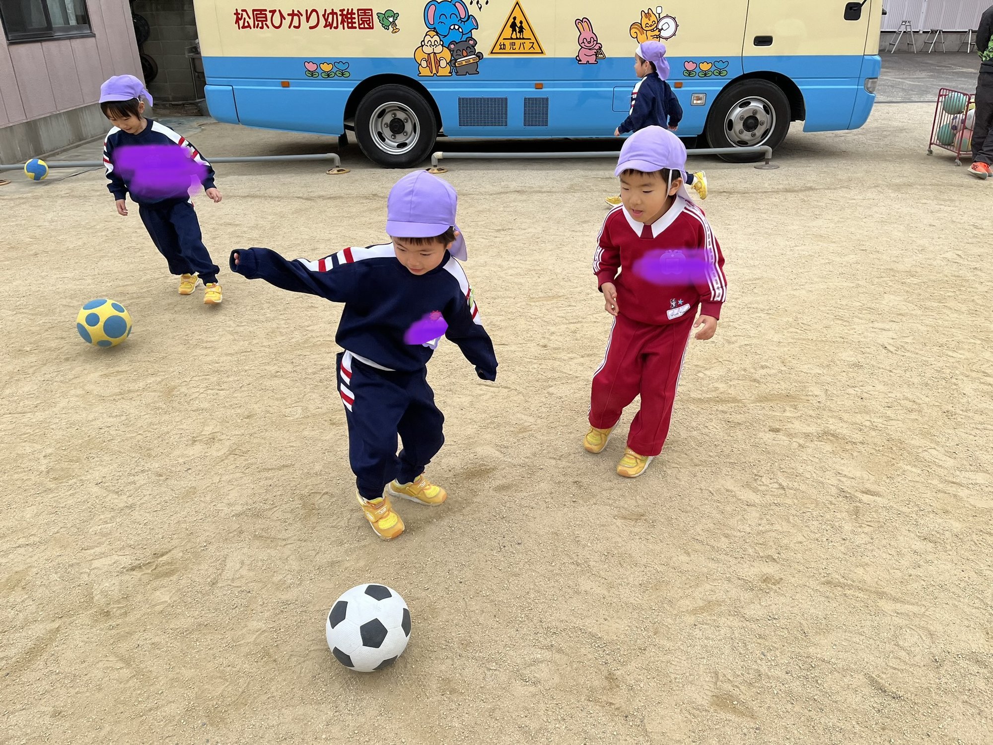サッカーを始めると上手にボールを蹴ったり相手のボールを取りに行ったりと、サッカーになっていました!