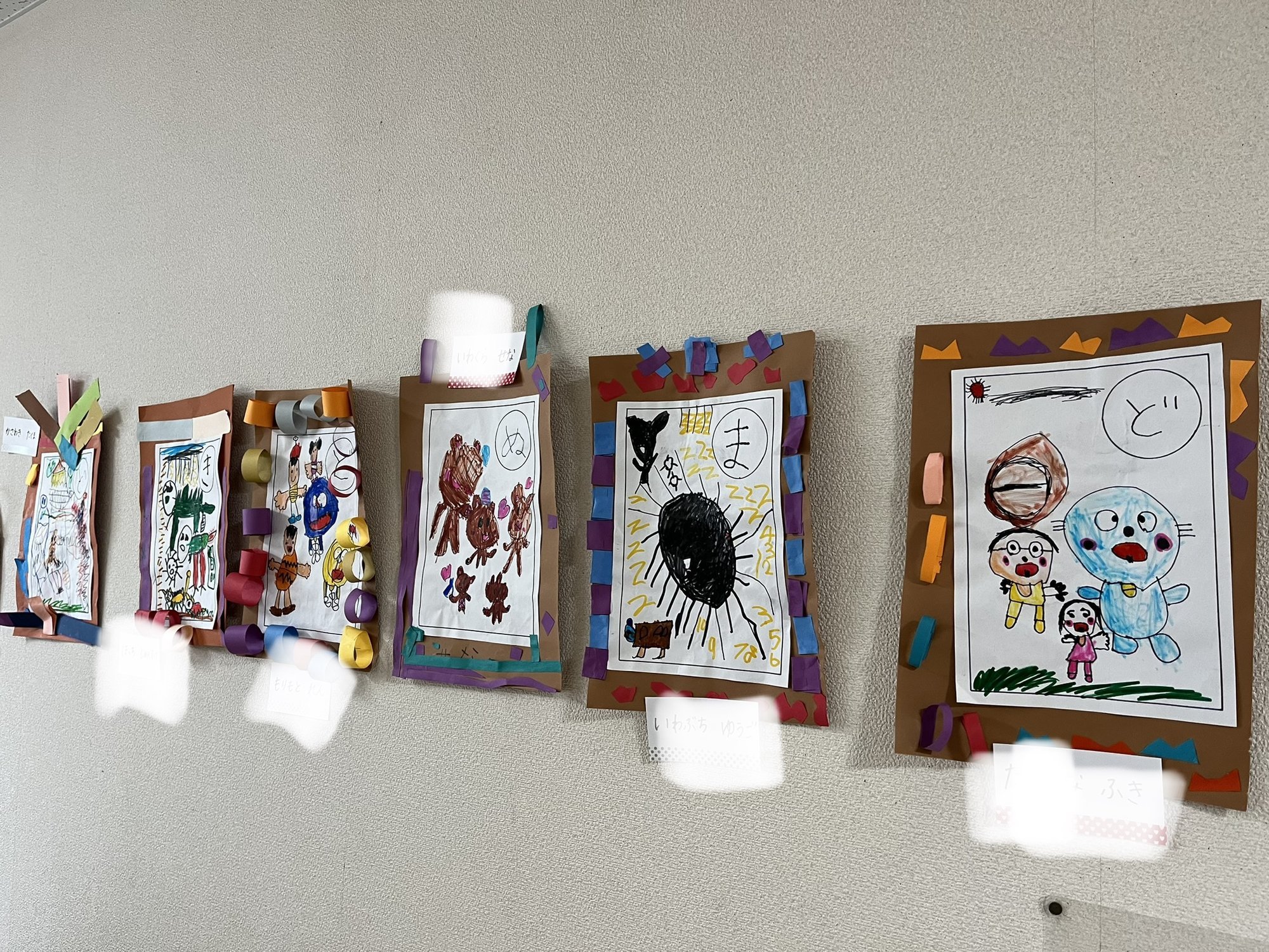 かるた作りをしました。卯年にちなんでうさぎさんを描く子が多かったですが、ドラえもんや虹やドラゴンなども描いていました。
