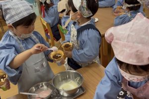 朝から「先生おはよ!今日クッキングやな」「まだ作らへんのー?」と子どもたちからの声が止まりませんでした笑