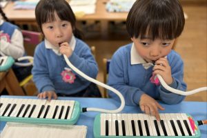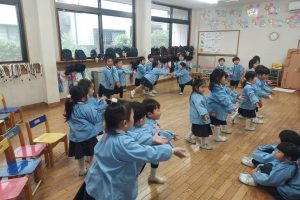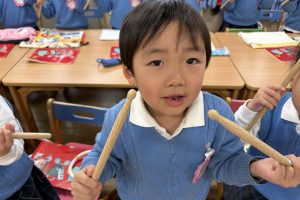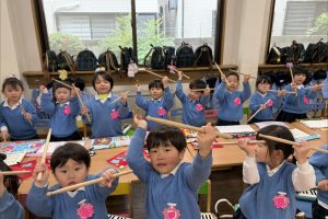 今は年中さんになる為に色々練習しています。初めてスティックをした時は目がキラキラ✩.*˚年長さんの鼓隊で見た「太鼓叩くやつだぁ」と憧れていた太鼓の練習が出来るので凄く嬉しそうでした。持ち方も難しいし、まだ手が小さいからスティックが太く、チョキの手はすぐ疲れちゃったりと大変だけれど、みんなピシッとかっこよく練習を頑張ってくれています( * ॑꒳ ॑*)