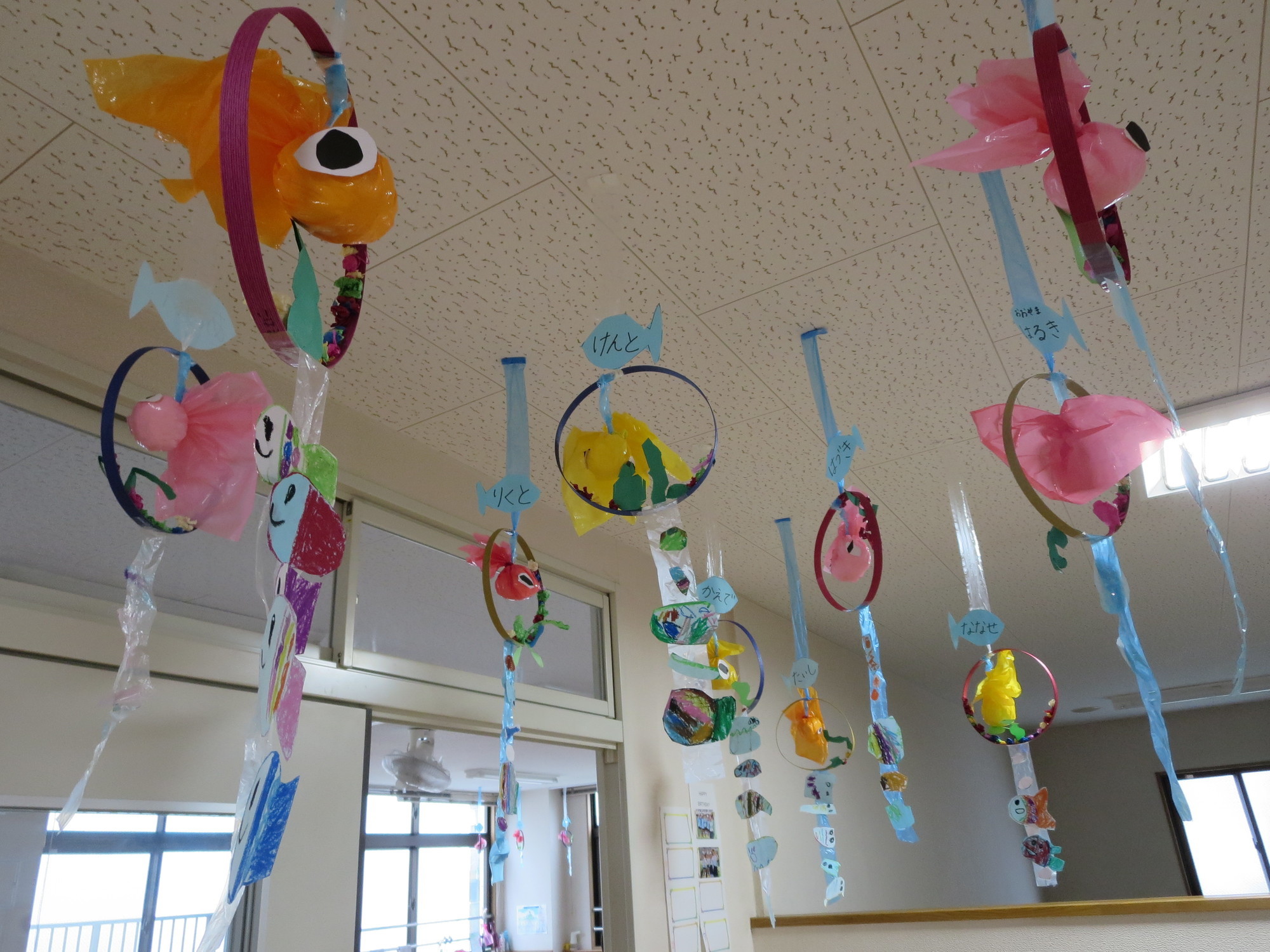 年中さんの壁面制作からは、どのクラスも子どもたちの