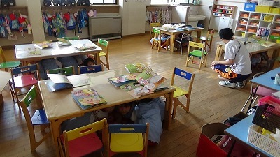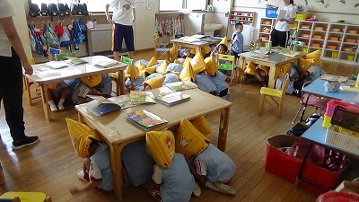小さい子どもたちは最初は怖い思いをしますが、徐々に慣れて、たとえば本当に地震が起こったときに、何も言われなくても反射的に机の下にもぐることができるようになっています。