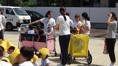 保育室にいたお友だち、トイレにいたお友だち、園庭であそんでいたお友だち、みんな上手く避難できました。