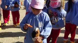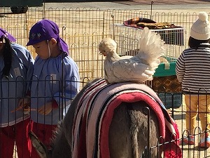 9日には、かわいい動物たちがやってきます。うさぎや羊、やぎ、亀、ろば、ハムスター・・・触れたり抱っこしたり、えさをやったりして楽しみましょう。えさは、細く切った野菜や、パンをお持ちになって動物たちにあげてかまいません。