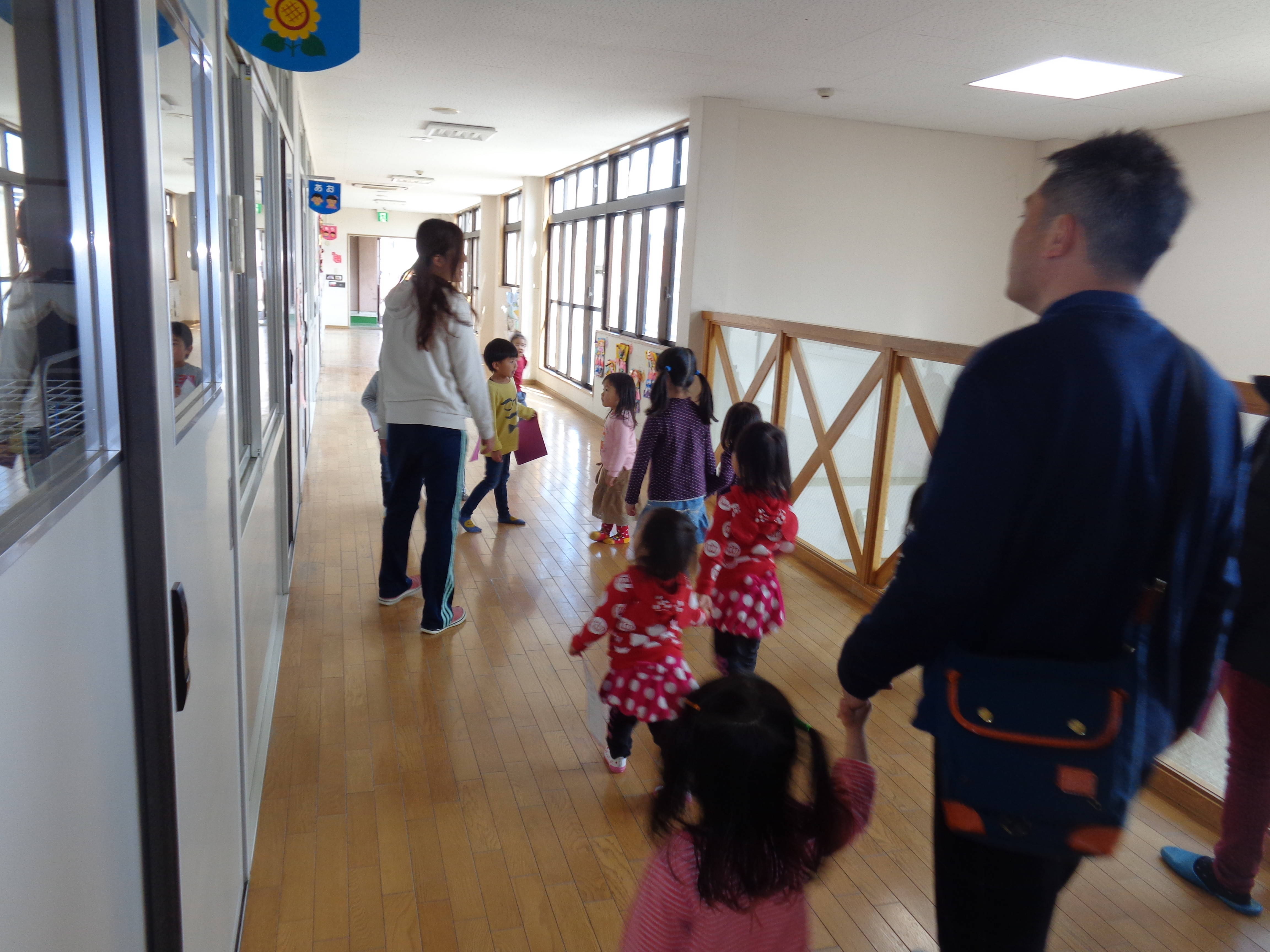 お家の方と一緒に探検できて楽しかったですね!もうすぐ入園するお友だちも、入園前に幼稚園の様子を見られて良かったかな〜と思います。入園式で元気なお友だちに会えるのを、楽しみにしていますね!