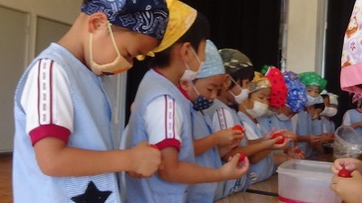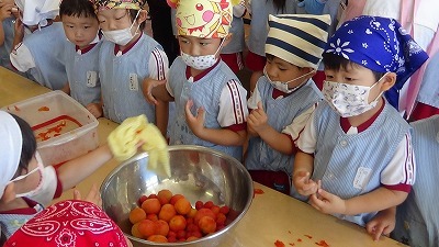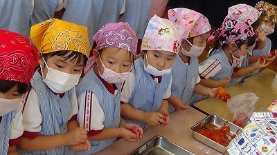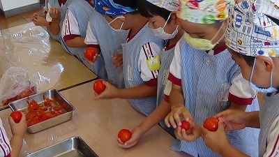 幼稚園で育ったトマトを使って、ハヤシライスを作ろう!ということで、