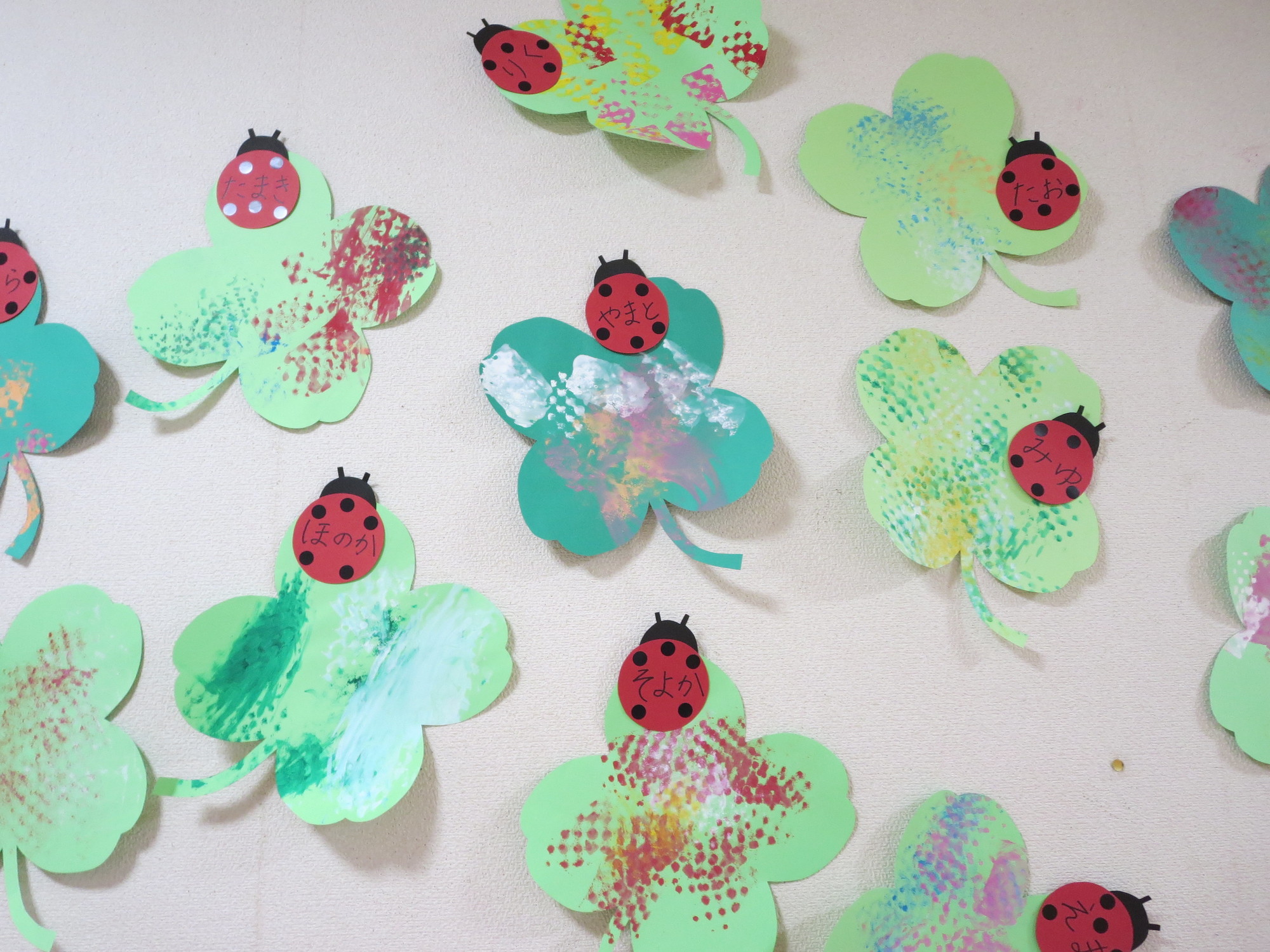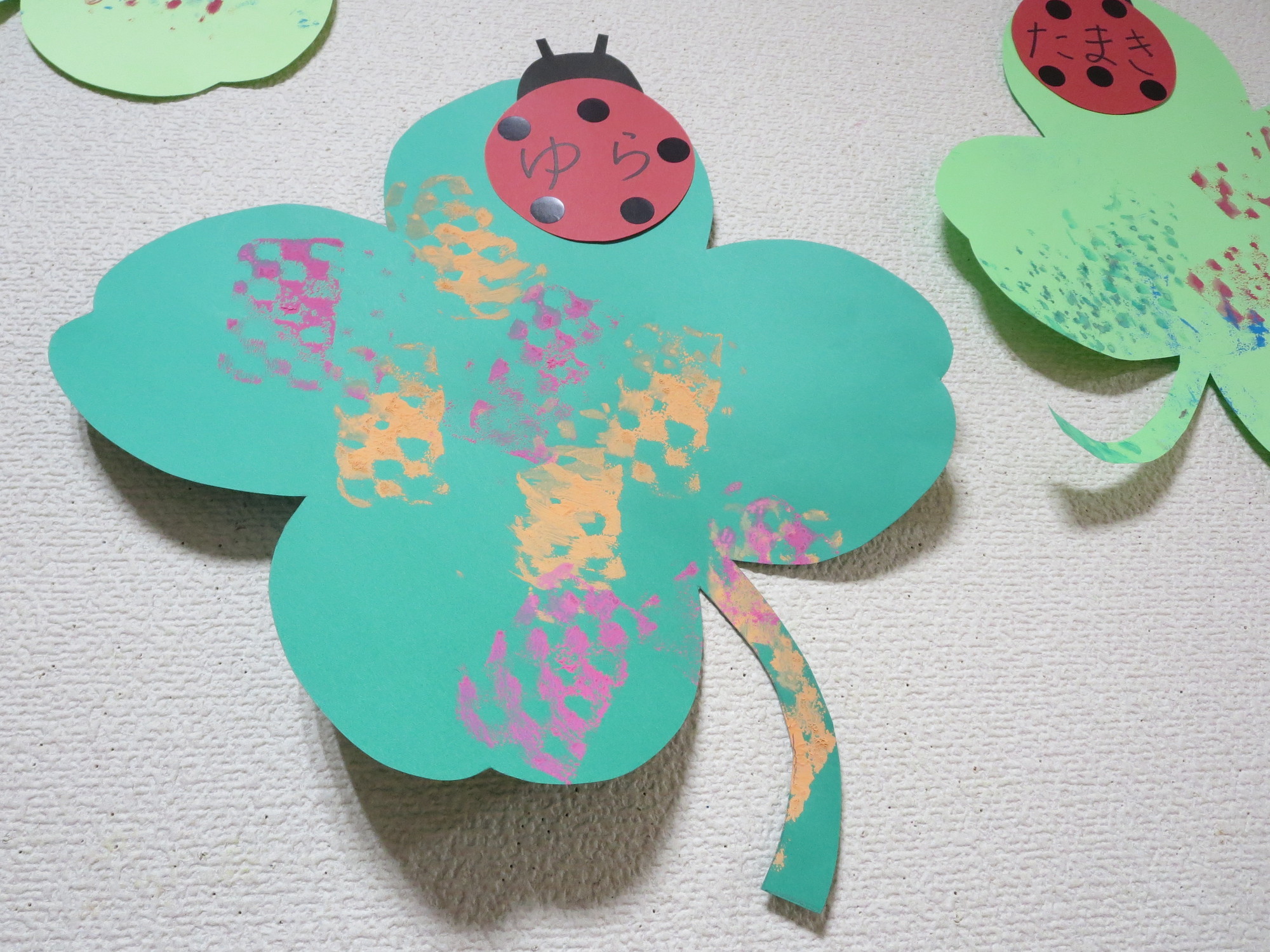 今回は、緑のクローバーにスタンプ遊びをしました。