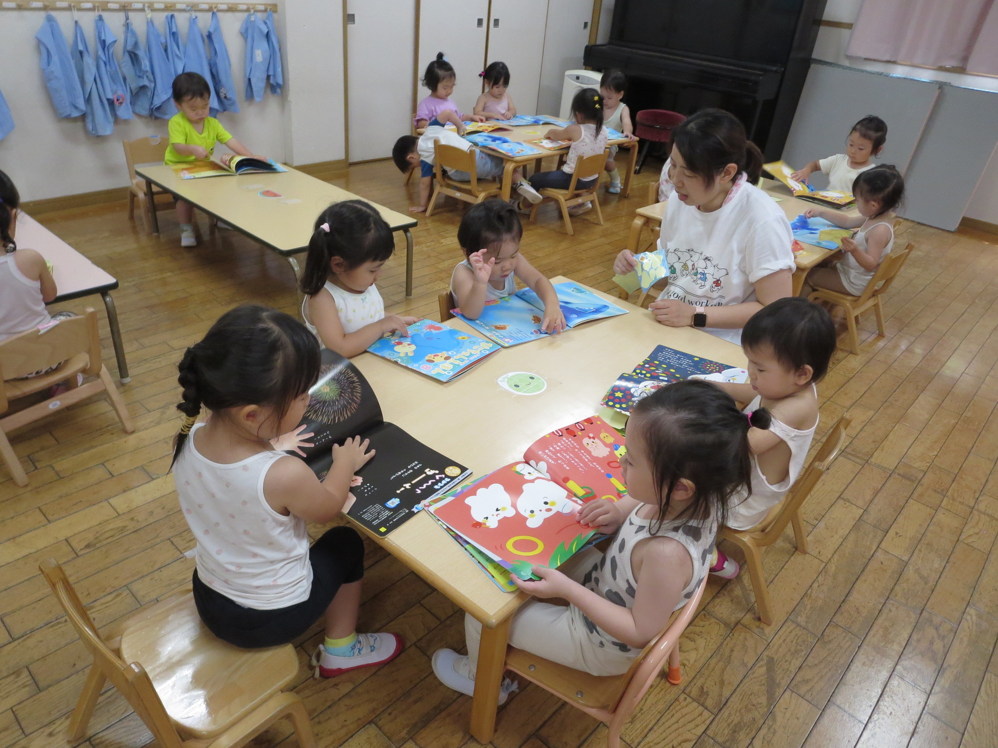 幼稚園では、お預かり保育のお友だちでにぎわっています。