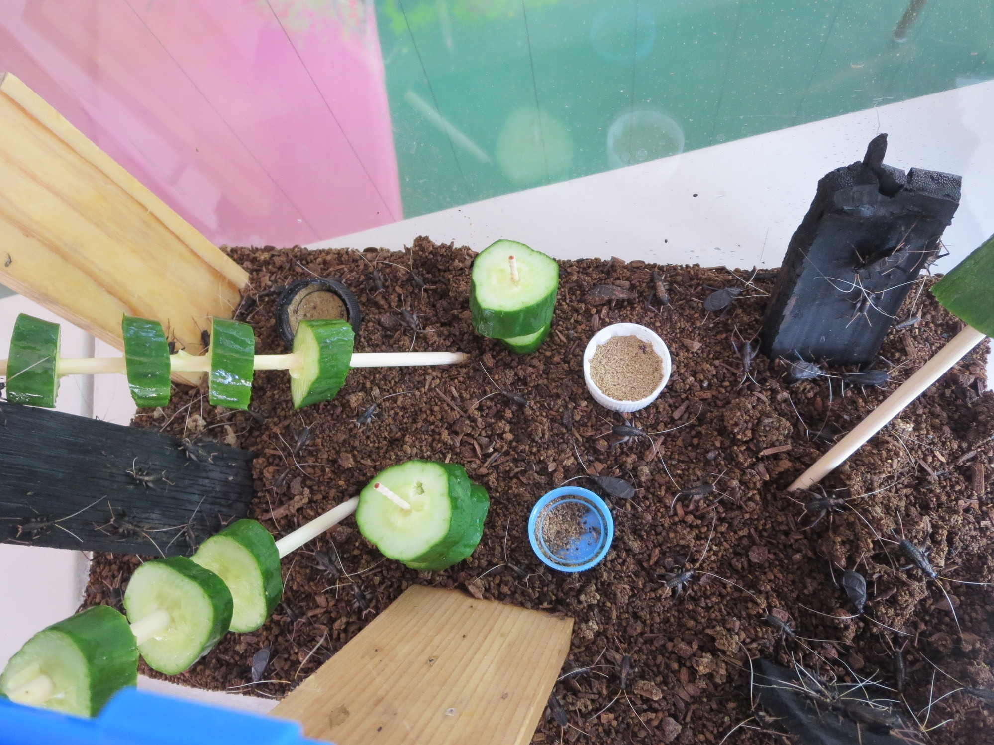ホール下を通る度に、子どもたちはじ~と虫かごをのぞきこんで