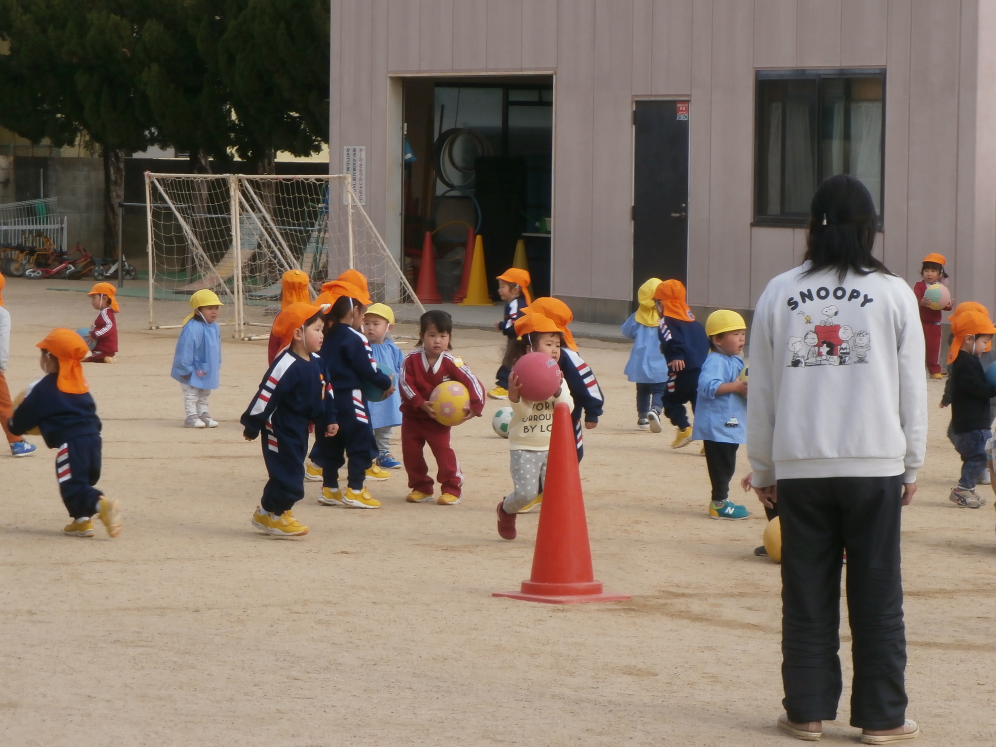 ボールを追いかけて、園庭を駆け回ります。