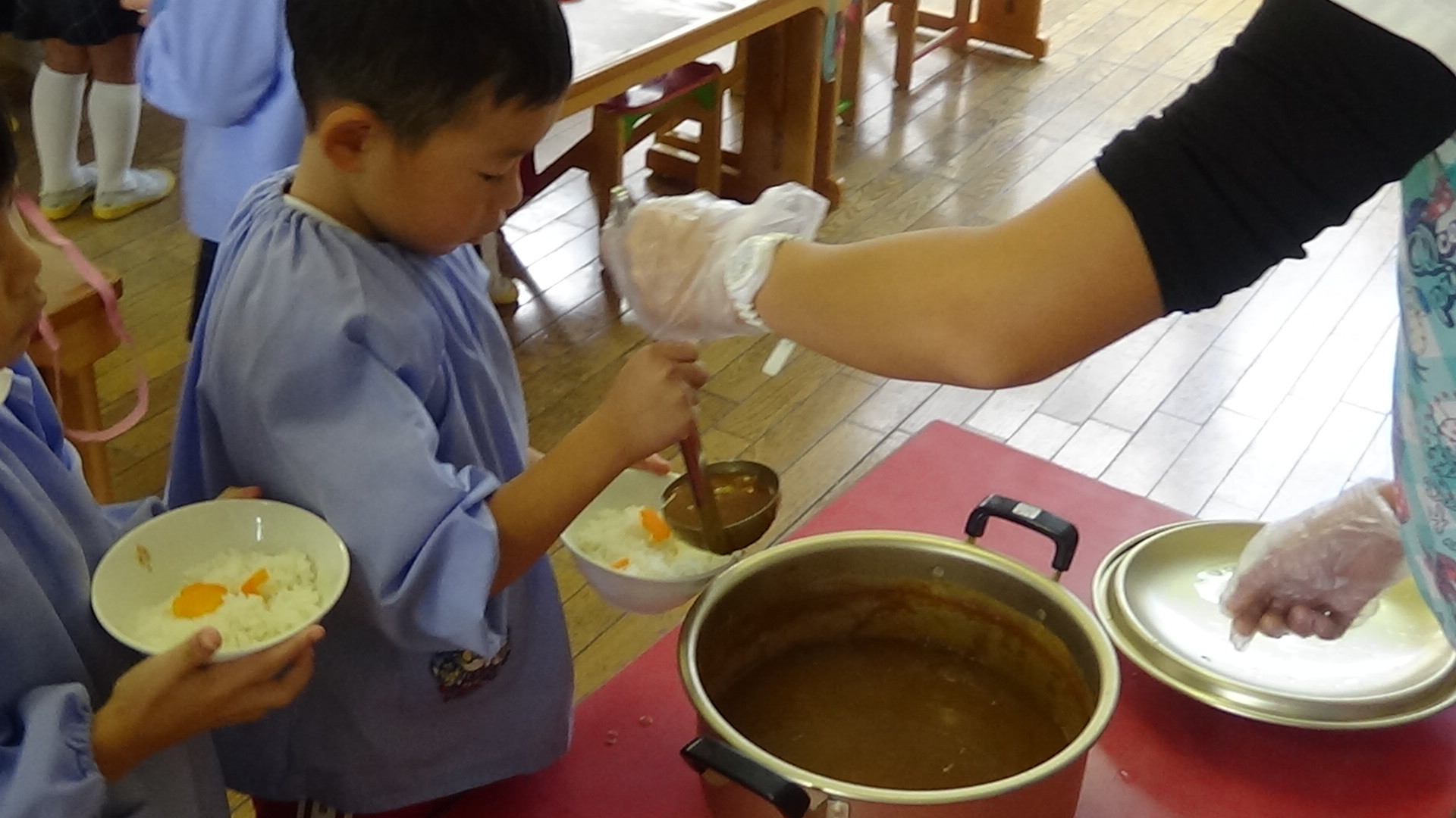 自分の作ったカレーが食べられるのを楽しみにしているようです☆