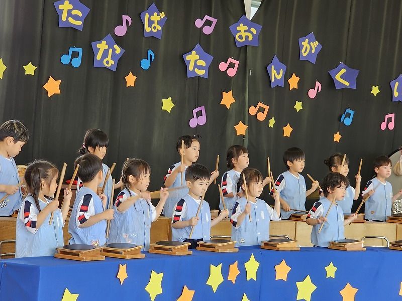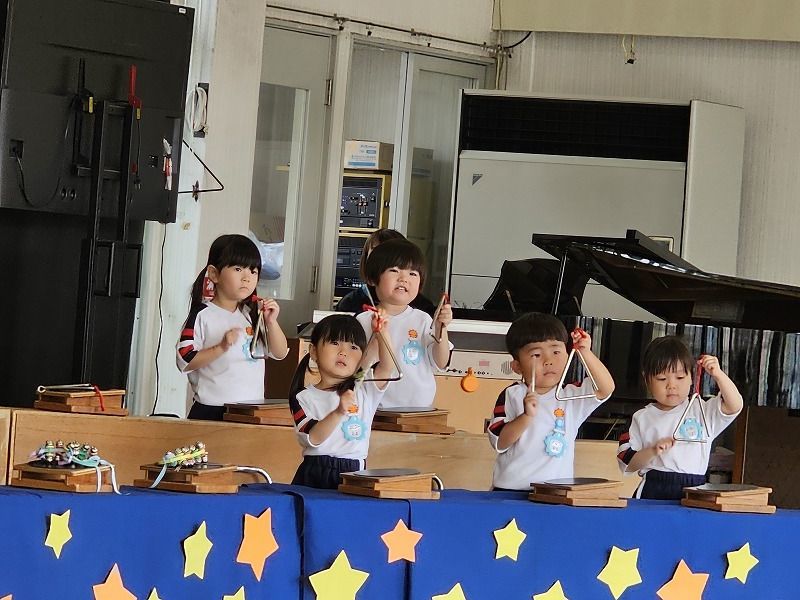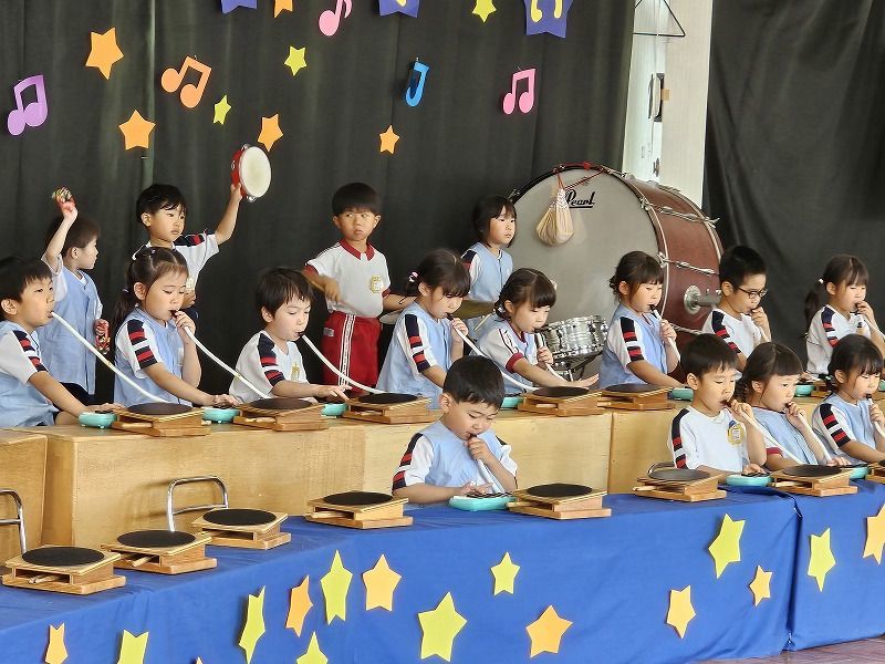 年少さんも「アンパンマンのマーチ」に合わせて一生懸命楽器を鳴らしています。