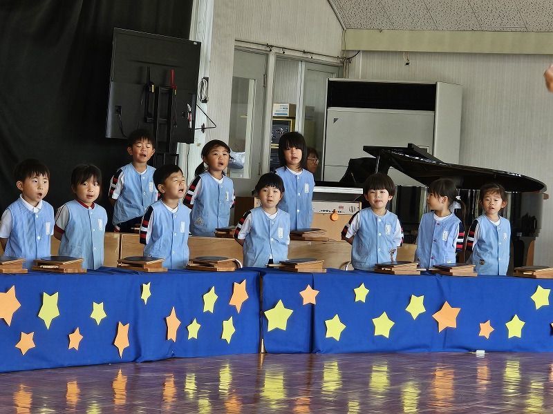 年長組さん、伴奏控えめ、子どもたちの歌声がす~っと耳に飛び込んできます。