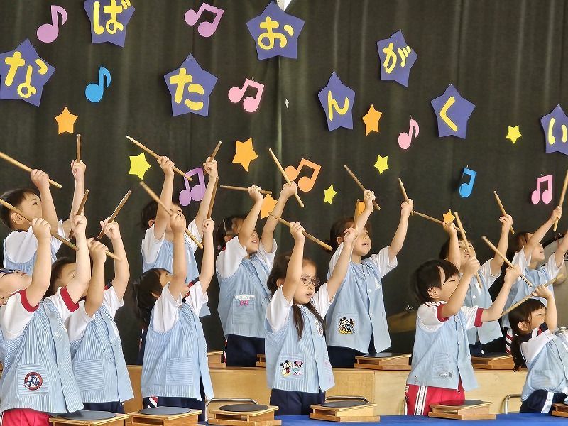 太鼓のスティックもちゃんと曲に合わせて歌いながら叩けば、皆ぴったり合ってきますよ。