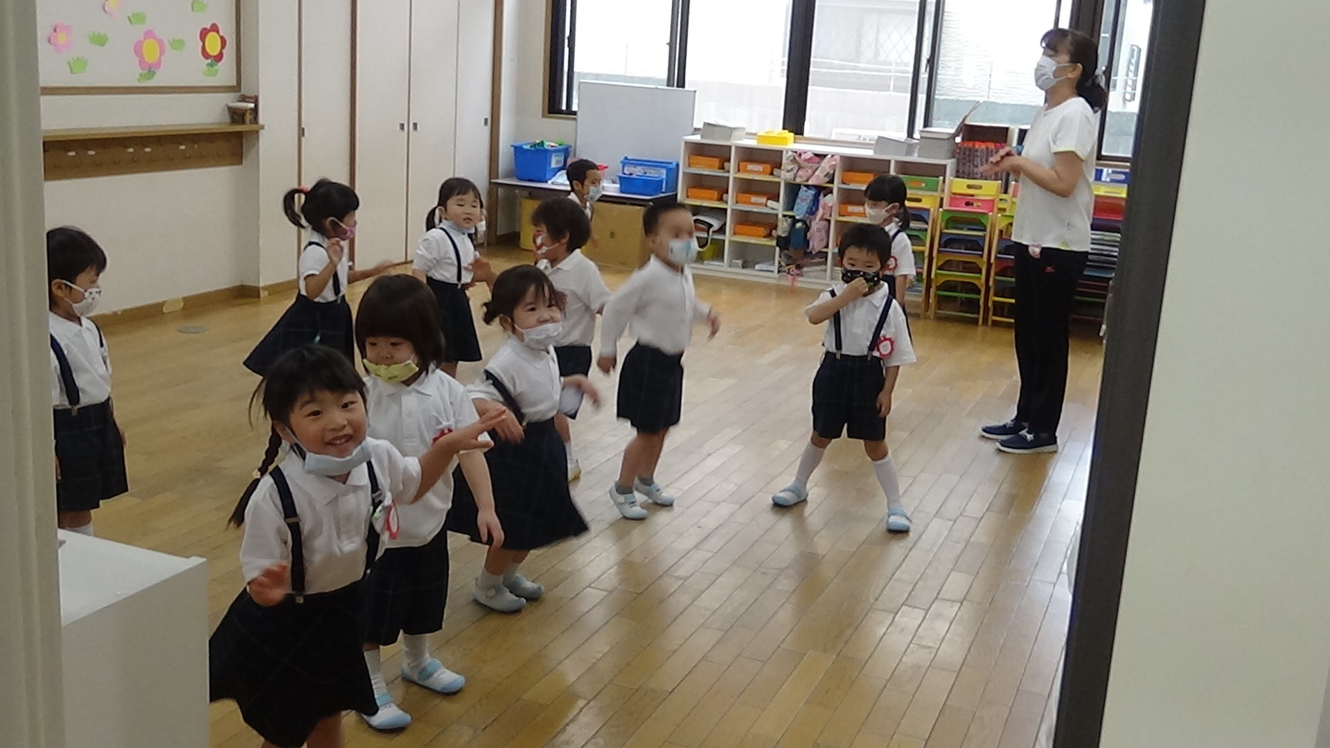 まだしばらく分散登園は続きます。来週からは給食も食べますので、ご準備よろしくお願いいたします。