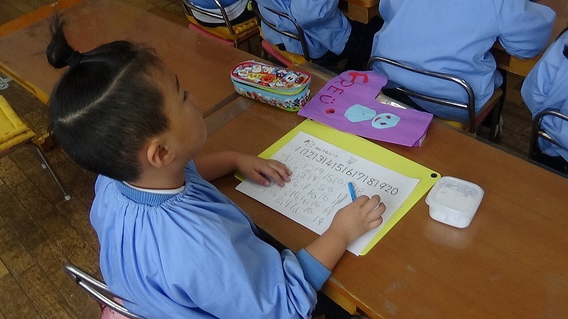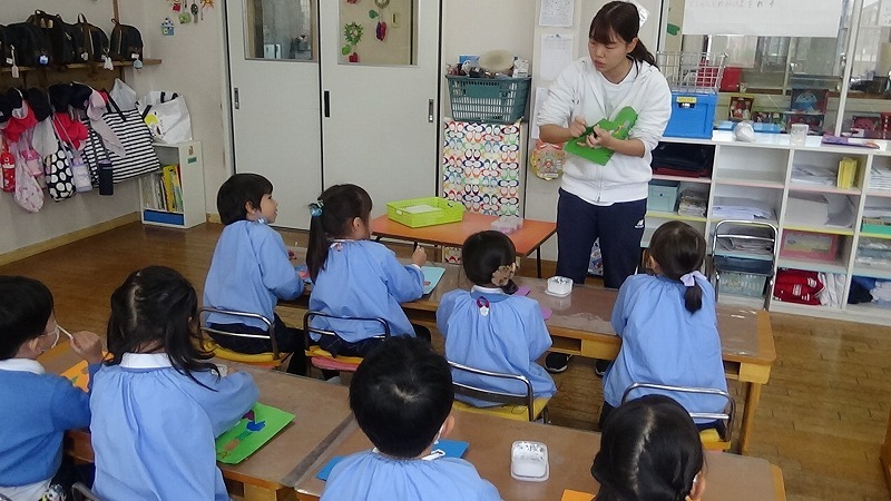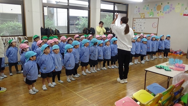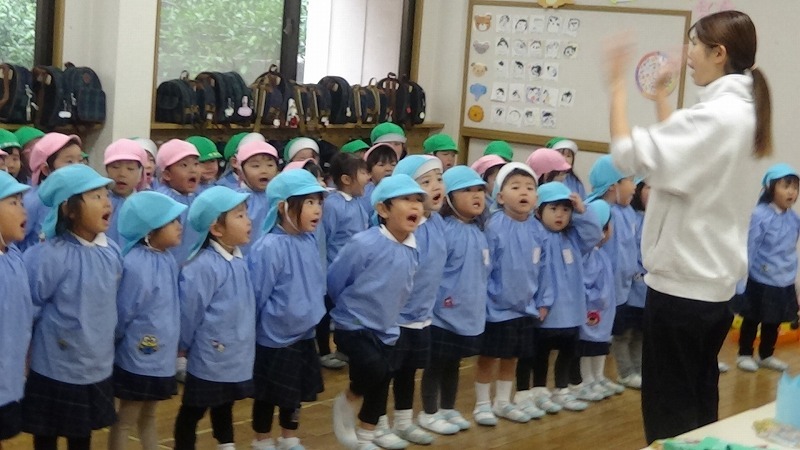年少組さんはちょうどお歌の練習をしていました。元気な声が出ていますが、