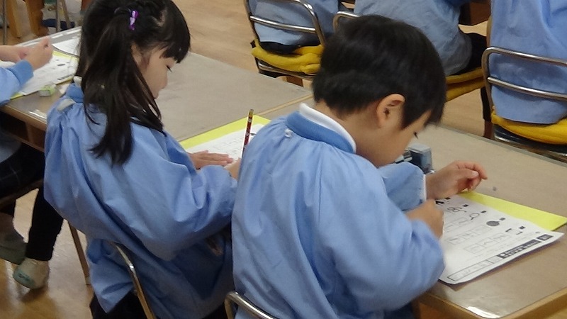 年長組にもなると、お友達と協力して机を運び、並べることも上手にできるようになります。