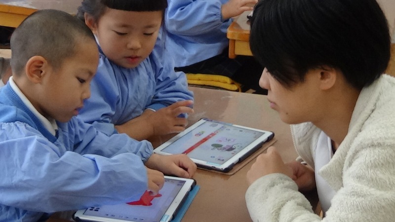 年中組もタブレットをサクサク使えるようになってきました。