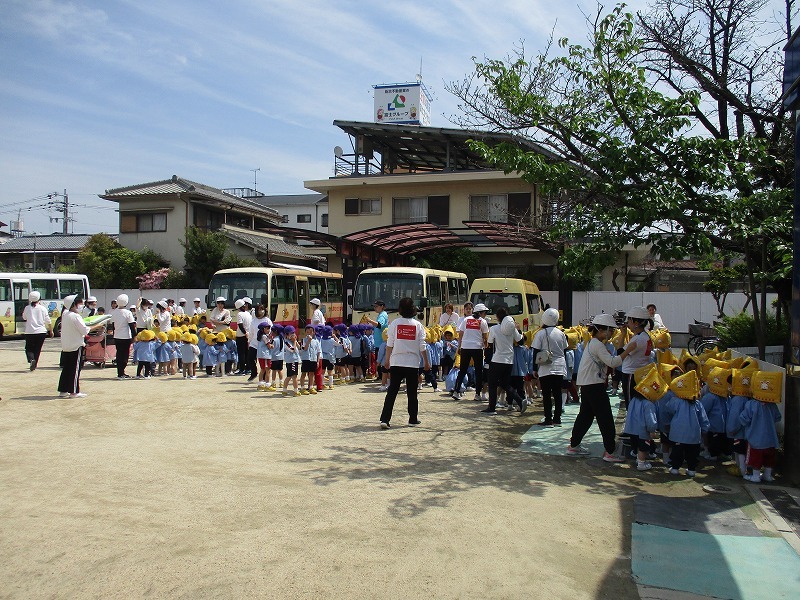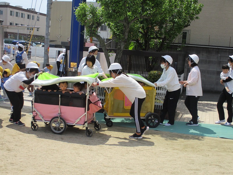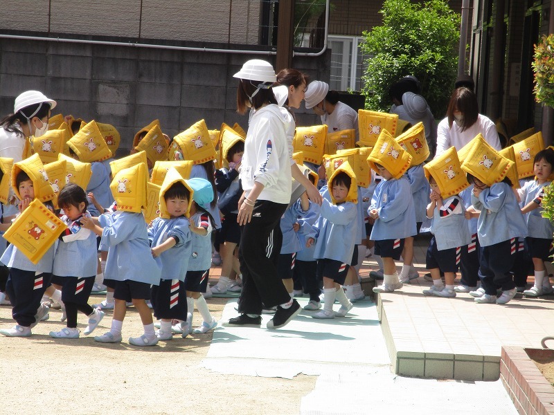 新入園児さんにとって、はじめての避難訓練です。