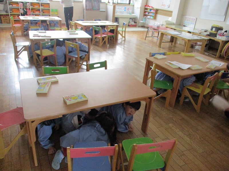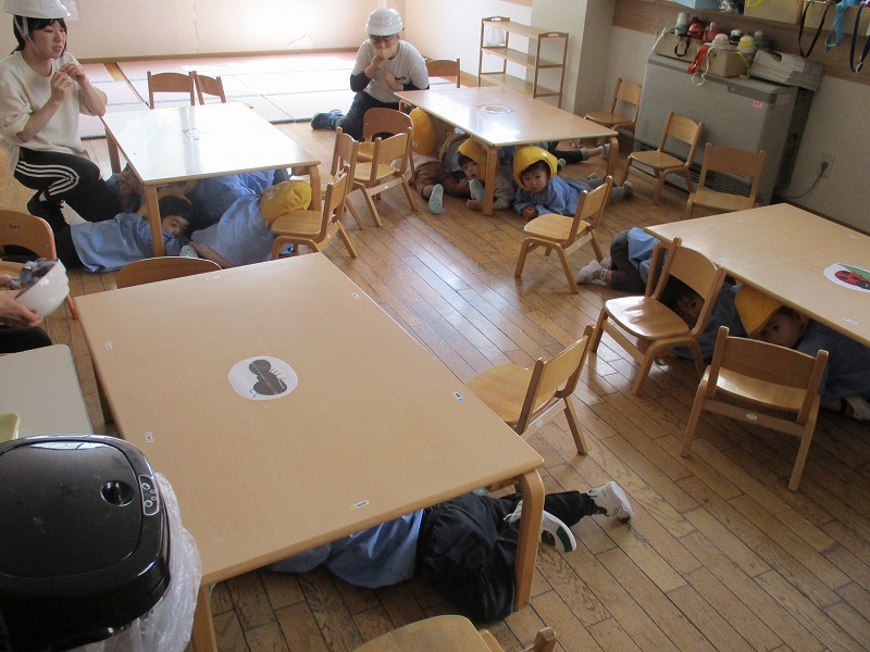 これから毎月違ったバージョンで避難訓練を行います。子どもたちも職員も体で覚えて冷静に動けるように訓練していきます。
